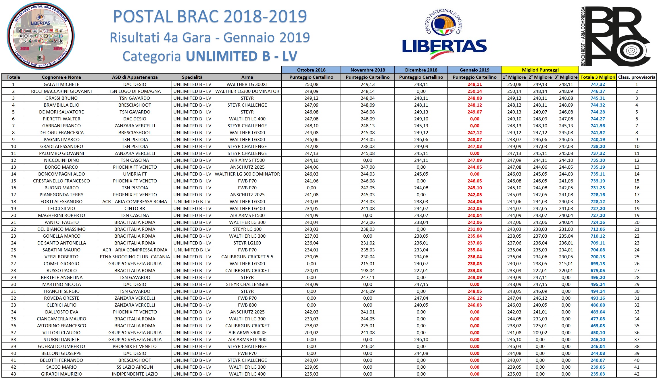GARA 4 – UNLIMITED B 10 febbraio 2019 2293 × 1319 Campionato Nazionale BRAC Italia LIBERTAS BR 25 2018/2019 -GARA 4 – Graduatorie provvisorie