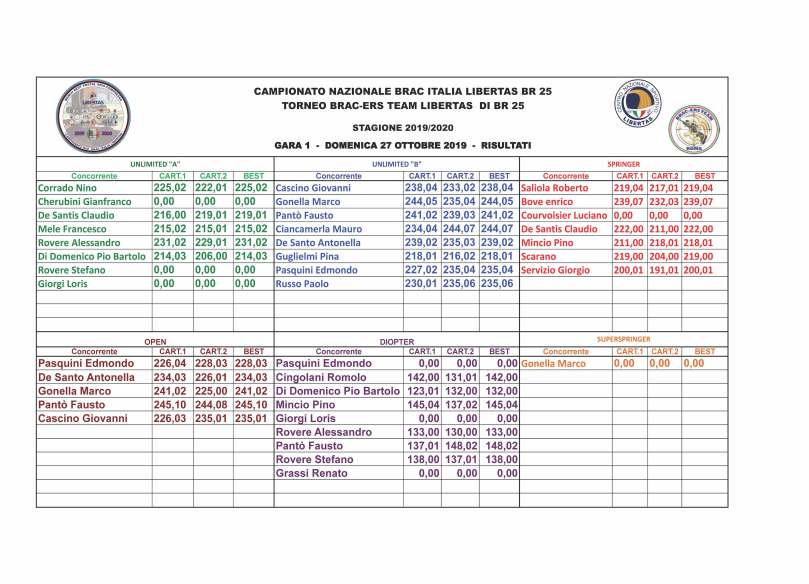 Risultati GARA 1 28 ottobre 2019 3508 × 2530 Campionato Nazionale BRAC-LIBERTAS & Torneo Regionale”Gianfranco Cherubini” di BR 25 – GARA 1 – Ottobre 2019