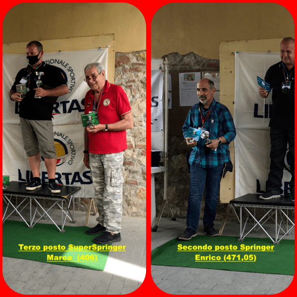 Tre Podi, rispettivamente, un secondo posto per Enrico in Springer con un punteggio di 471,05, un ulteriore secondo posto per Fausto in Open con 494,19 ed un terzo posto per il sottoscritto in SuperSpringer con 406,00, anche se con poco onore visto che, per una serie di defezioni, i concorrenti che si sono cimentati nella categoria Superspringer erano soltanto …tre. Il podio sarebbe stato comunque inevitabile…