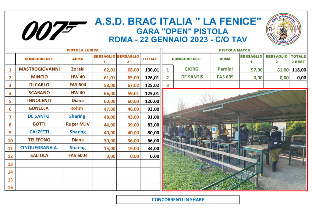 Tirare di precisione in posizione eretta a 10 metri con le pistole A.C. ed, in special modo quelle ludiche, non è affatto un esercizio facile. Semplici testimoni ne sono stati i frequenti …“moccoli” tirati giù dai concorrenti , unica interruzione al silenzio delle sessioni di tiro.