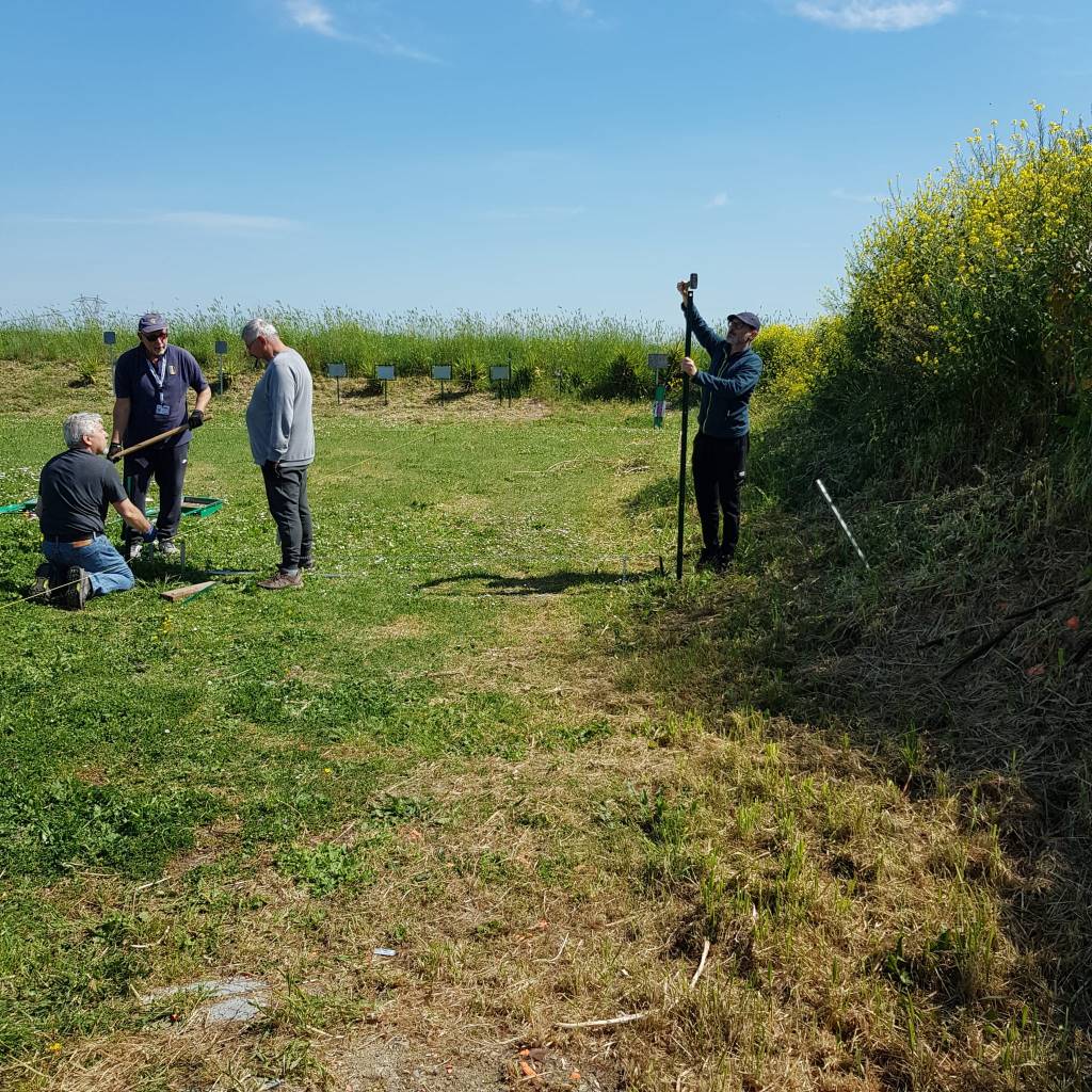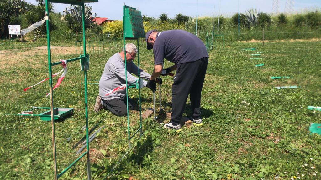Le differenze di livello dell’area di tiro non hanno facilitato il compito di mettere a dimora i canotti di alloggiamento in modo corretto. Con un po’ di buona volontà, di pazienza e, soprattutto, di “mazzate”……