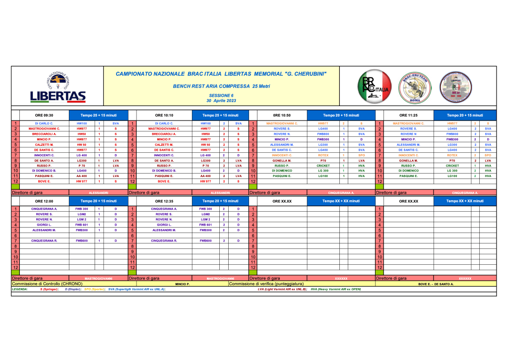 Di seguito le griglie relative alle due competizioni in oggetto che si svolgono contestualmente