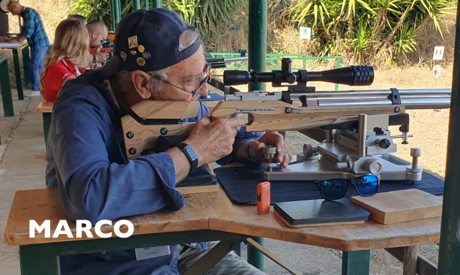 Proprio un bell’inizio ! Fortuna che, sia l’abitudine che ci vede ormai rassegnati della presenza fissa del nostro maledettissimo… “amico”, sia l’entusiasmo di rivederci tutti assieme dopo un bel po’ di tempo ai tavoli di tiro, ha limitato notevolmente i livelli di incazzatura generale. Così la mattinata è trascorsa con la solita allegria di sempre.