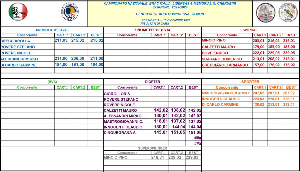 Una splendida giornata di sole ha accolto i tiratori. Totale assenza di vento che ha permesso a tutti di fare punteggi spettacolari, oltre 260 per le Springer e oltre 170 per le Diopter.