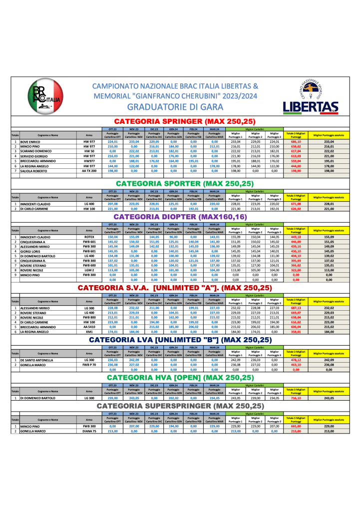 I CONCORRENTI CHE NON HANNO TOTALIZZATO ALMENO 3 BERSAGLI DEI 6 PREVISTI SONO, PURTROPPO, AUTOMATICAMENTE ESCLUSI DALLA FINALE