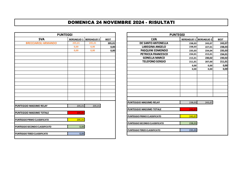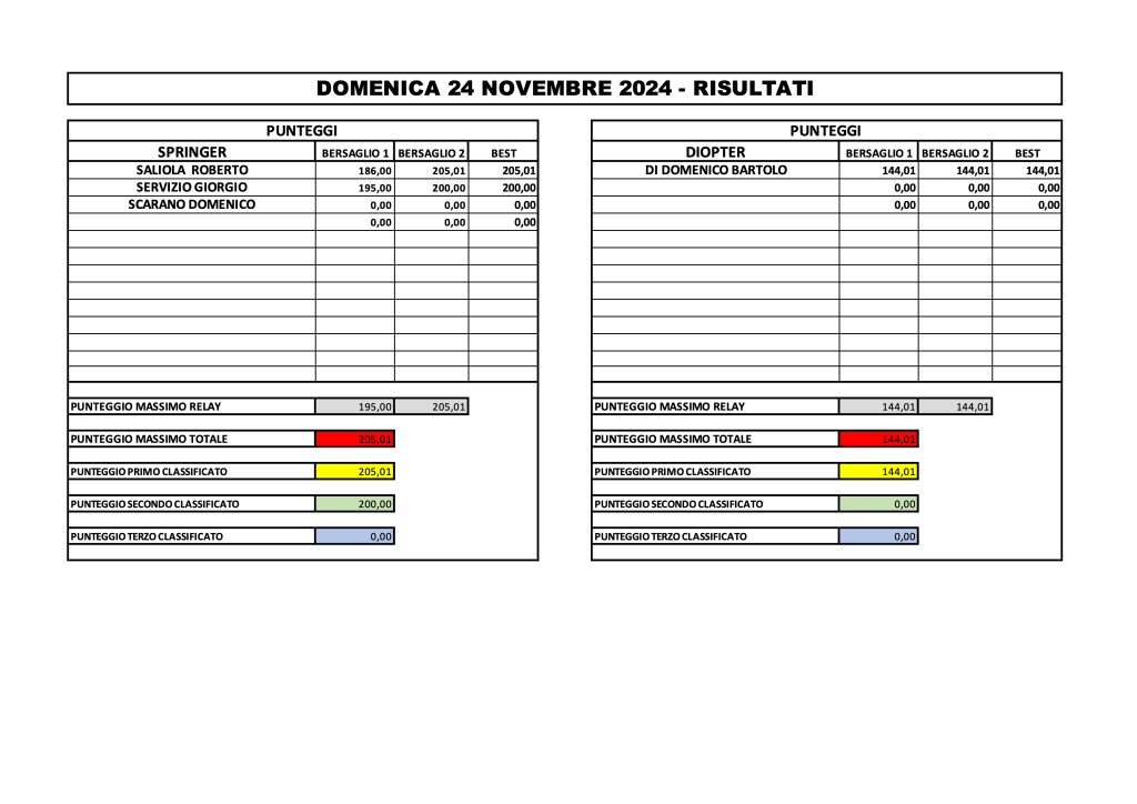 Come indicato in precedenza I risultati ottenuti per GARA 2 di Campionato, seppure modesti, faranno fede anche per il “Memorial Romolo Cingolani , che prevede la produzione di cinque bersagli a partire dal corrente mese di Novembre, fino a Marzo 2025. la somma dei migliori due determinerà la classifica della competizione.