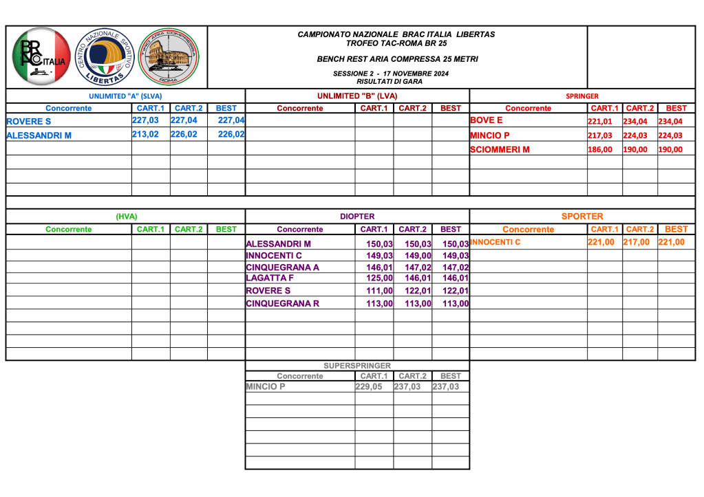 Una menzione particolare va fatta per G.Mincio, unico in SuperSpringer che con il suo 237,03 ha superato S.Rovere e M.Alessandri in SVA e C.Innocenti unico in Sporter.