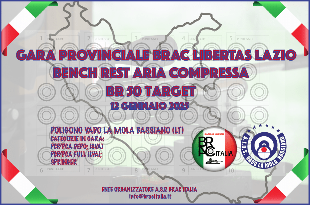 Come sapete, l’ASD BRAC Italia saluta il nuovo anno organizzando una competizione di tiro con l’aria compressa presso il Poligono di Vado la Mola che, con grande cordialità, si è reso disponibile ad ospitare l’evento.