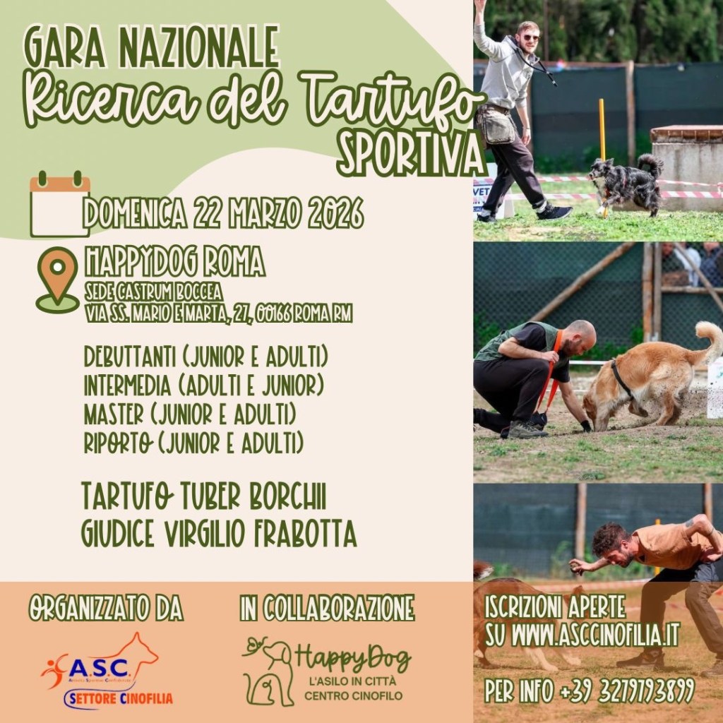 C’è da aggiungere che, negli ultimi tempi, la ricerca del tartufo sia divenuta una vera e propria pratica sportiva che coinvolge, oltre che molteplici Associazioni Dilettantistiche Sportive cinofile in tutta Italia, anche una Federazione Nazionale, la FIDASC (Federazione Italiana Discipline Armi Sportive e Cinofilia Sportiva)