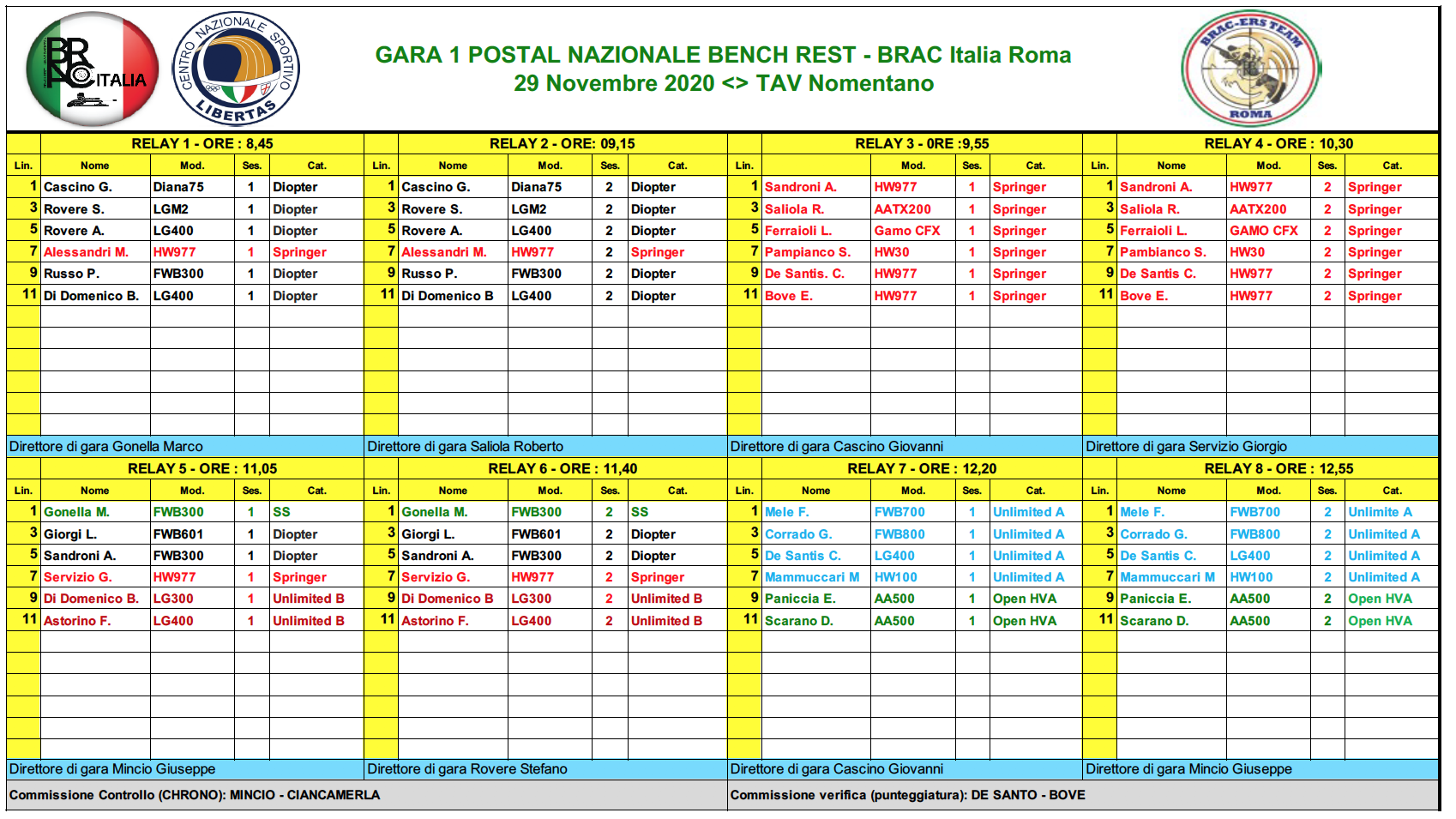 Campionato BRAC Italia LIBERTAS BR 25 – 2019/2020 – Gennaio 2020 – risultati a GARA 4