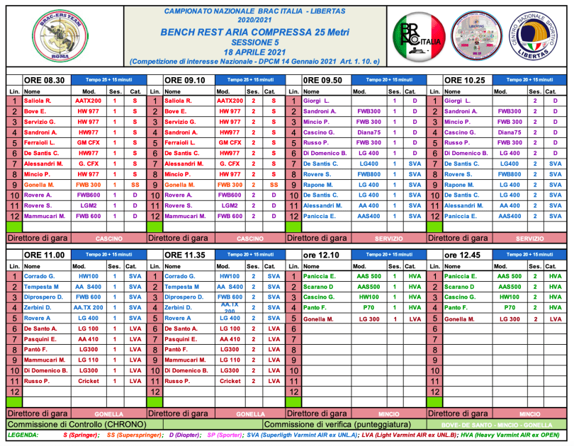 CAMPIONATO NAZIONALE BRAC Italia LIBERTAS BR 25 STAGIONE 2020/2021