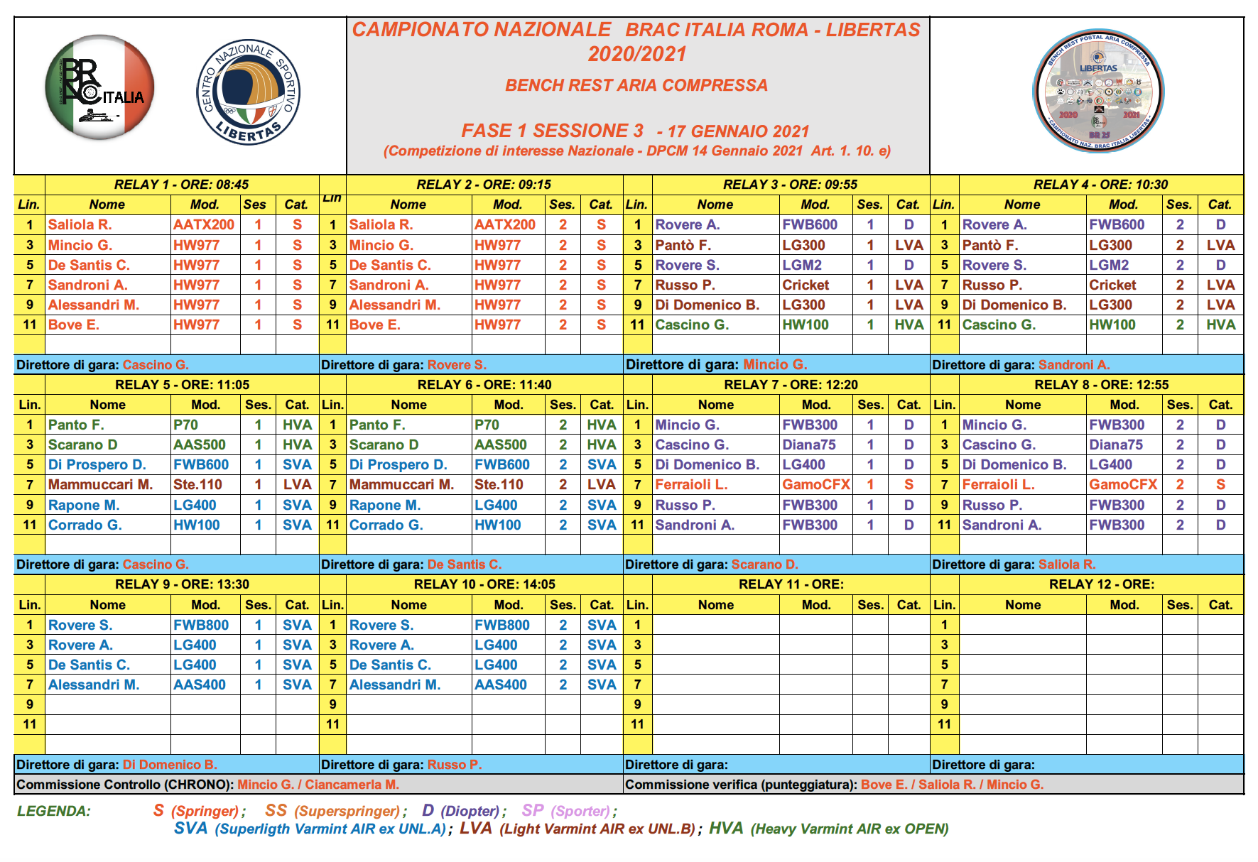 CAMPIONATO NAZIONALE BRAC Italia LIBERTAS BR 25 STAGIONE 2020/2021