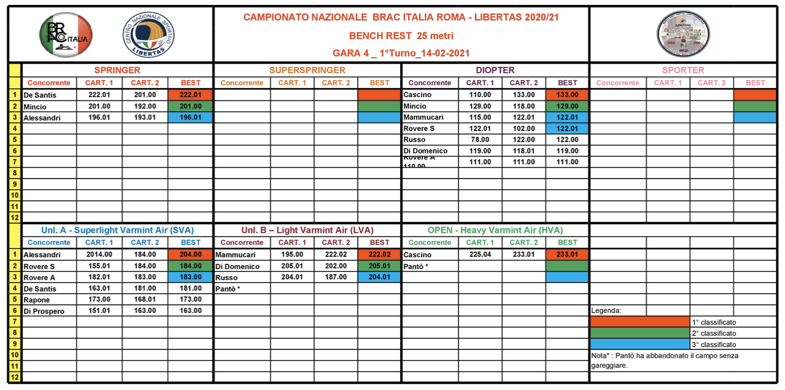 Campionato BRAC Italia LIBERTAS BR 25 – 2019/2020 – Gennaio 2020 – risultati a GARA 4