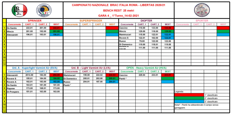 RISULTATI AL TERMINE DI GARA 4 – FEBBRAIO 2022