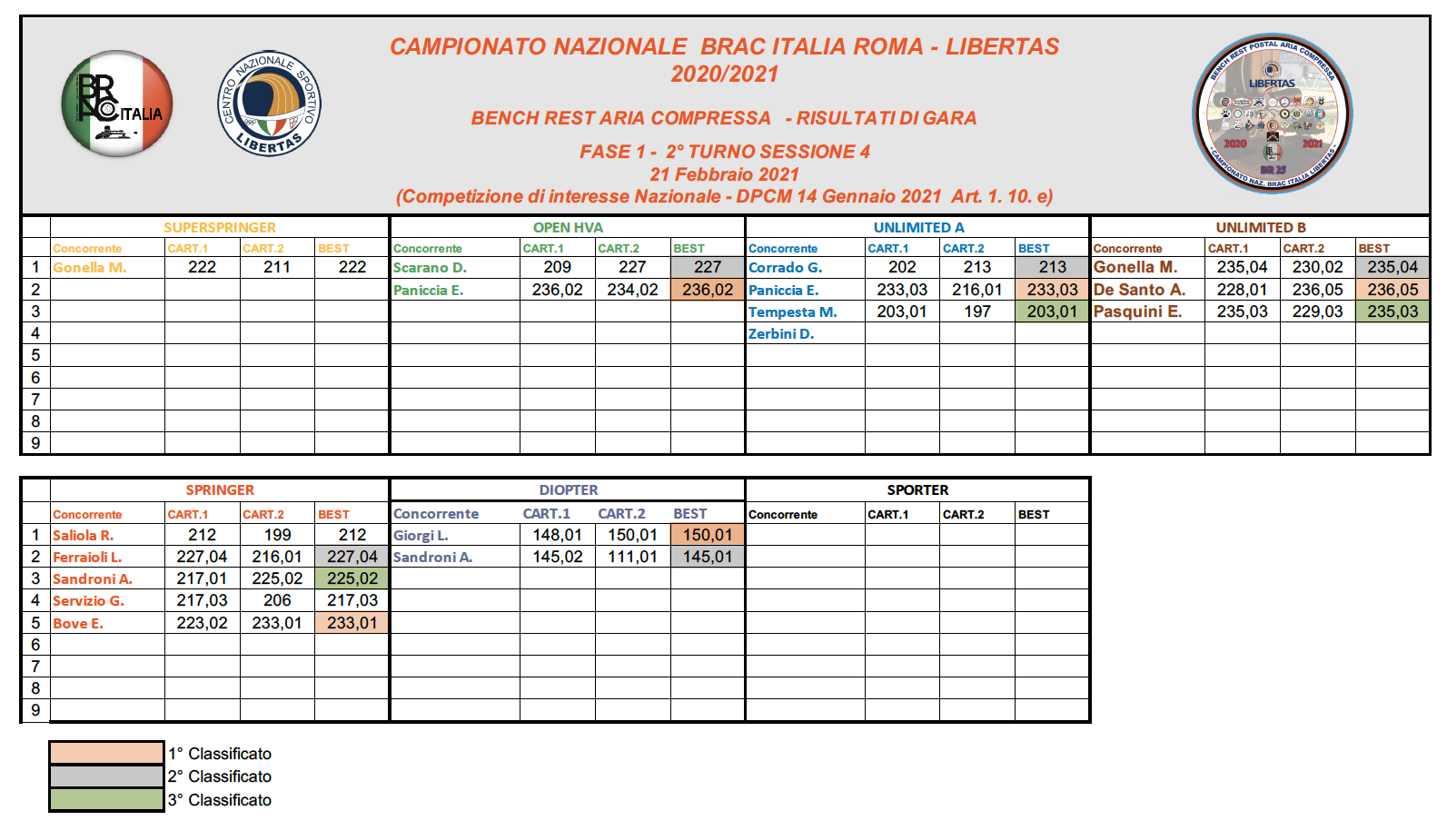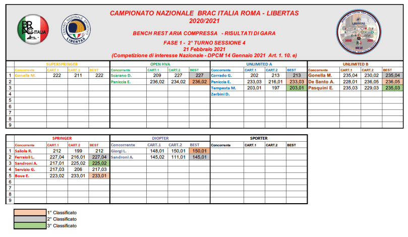 RISULTATI AL TERMINE DI GARA 4 – FEBBRAIO 2022
