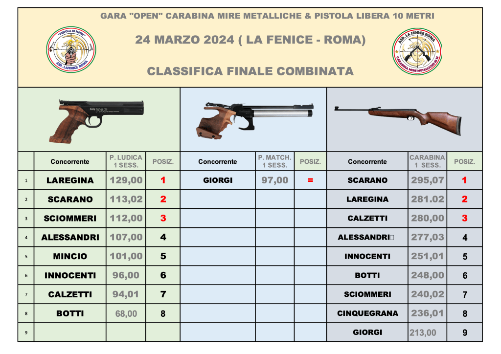 OPEN PISTOLA LUDICA – PISTOLA MATCH & CARABINA MIRE METALLICHE – 24 MARZO 2024 Di seguito i risultati di gara: open-piscara-24-marzo-2024-risultati-1Download Condividi: Fai clic per condividere su X (Si apre in una nuova finestra) X Fai clic per condividere su Facebook (Si apre in una nuova finestra) Facebook Mi piace Caricamento...