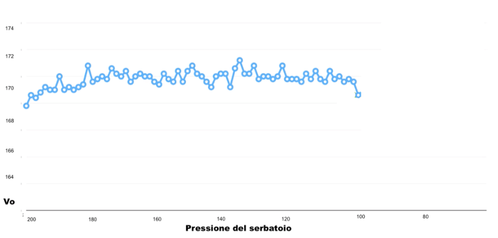 Il grafico mostra una serie di misurazioni di Vo rilevate da una Walther LG 300 dotata, di serie, del regolatore di pressione.