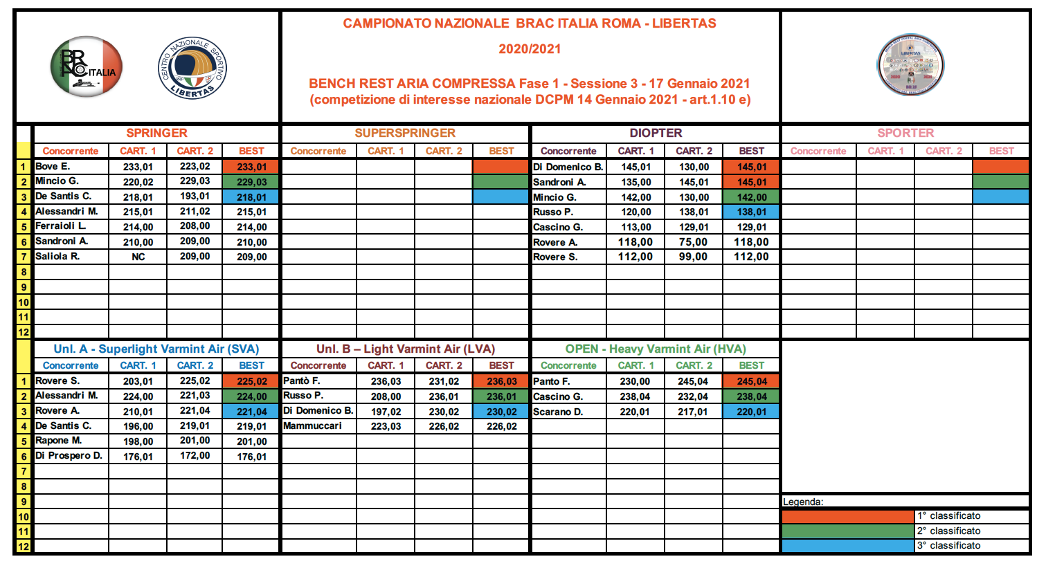 CAMPIONATO NAZIONALE BRAC Italia LIBERTAS BR 25 STAGIONE 2020/2021