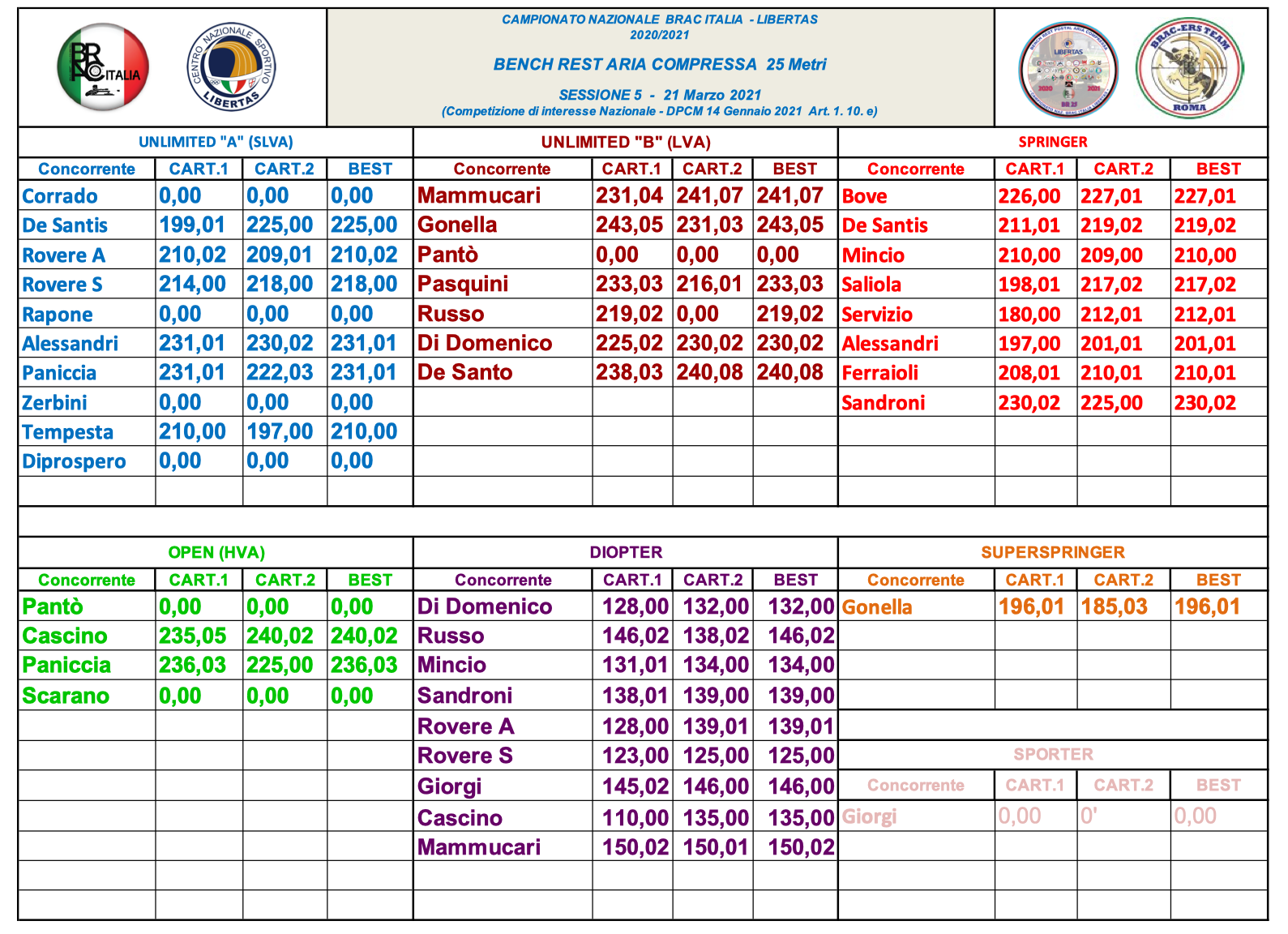 CAMPIONATO NAZIONALE BRAC Italia LIBERTAS BR 25 STAGIONE 2020/2021