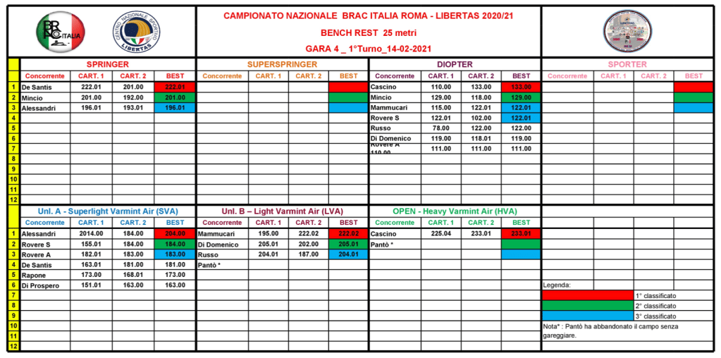 Risultati GARA 4 Risultati Primo Turno – 14 Febbraio 2021 GARA 4 – Risultati 1° Turno – 14 Febbraio 2021Download RIsultati Secondo Turno – 27 Febbraio 2021 GARA 4 – Risultati 2° Turno – 21 Febbraio 2021Download GARA 3 GARA 3 – 14.1.2021 -RisultatiDownload GARA 2 GARA 2 – 20.12.2020 – Risultati Download GARA 1 GARA 1 – 29.11.2020 – Risultati Download Condividi: Fai clic per condividere su X (Si apre in una nuova finestra) X Fai clic per condividere su Facebook (Si apre in una nuova finestra) Facebook Mi piace Caricamento...