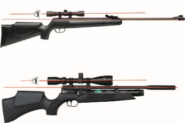 - gli attacchi dovranno essere scelti di altezza tale da consentire un perfetto allineamento dell’occhio sulla linea di mira. L’ottica dovrà essere sistemata, pertanto, in modo che il tiratore possa traguardare il bersaglio senza sforzare la propria posizione, mantenendo quanto più possibile la testa eretta e, soprattutto, mantenendo il contatto tra la propria guancia ed il calcio della carabina (poggiaguancia/montecarlo).